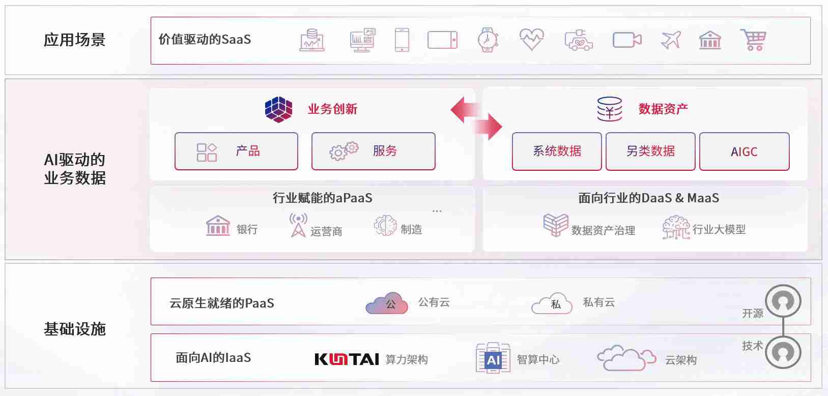 数字时代,,,,围绕企业数字化转型的关键要素,,bodog数码开创性的提出数云融合战略和技术体系框架,,,,着力在云原生、、数字原生、、、AI原生和信创产业上架构产品和服务能力,,,,为处在不同数字化转型阶段的快消零售、、、汽车、、、金融、、、医疗、、政企、、、教育、、、运营商等行业客户提供泛在的敏捷IT能力和融合的数据驱动能力,,构建跨界融合创新的数字业务场景和新业务模式,,助力企业级客户建立面向未来的核心能力和竞争优势,,,,全面推动社会的数字化、、、智能化转型升级。。